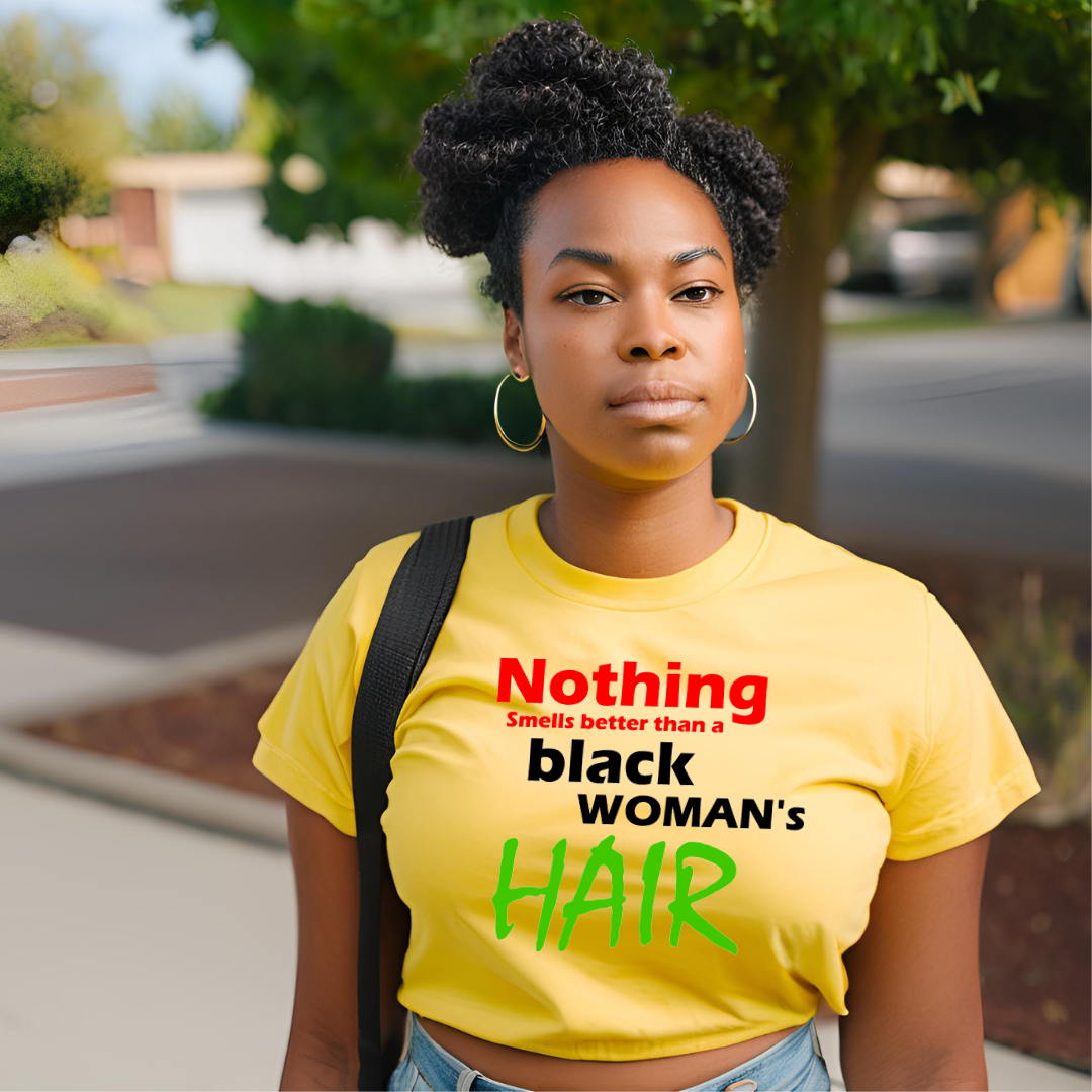 Celebrate beauty, culture, and confidence with the Black Women’s Hair T-Shirt. Featuring the bold statement “Nothing Smells Better Than a Black Woman’s Hair,” this shirt is more than apparel — it’s an appreciation of heritage, strength, and self-love. Designed with a modern, minimalist aesthetic, it pairs effortlessly with jeans, joggers, or layered looks while making a powerful statement.